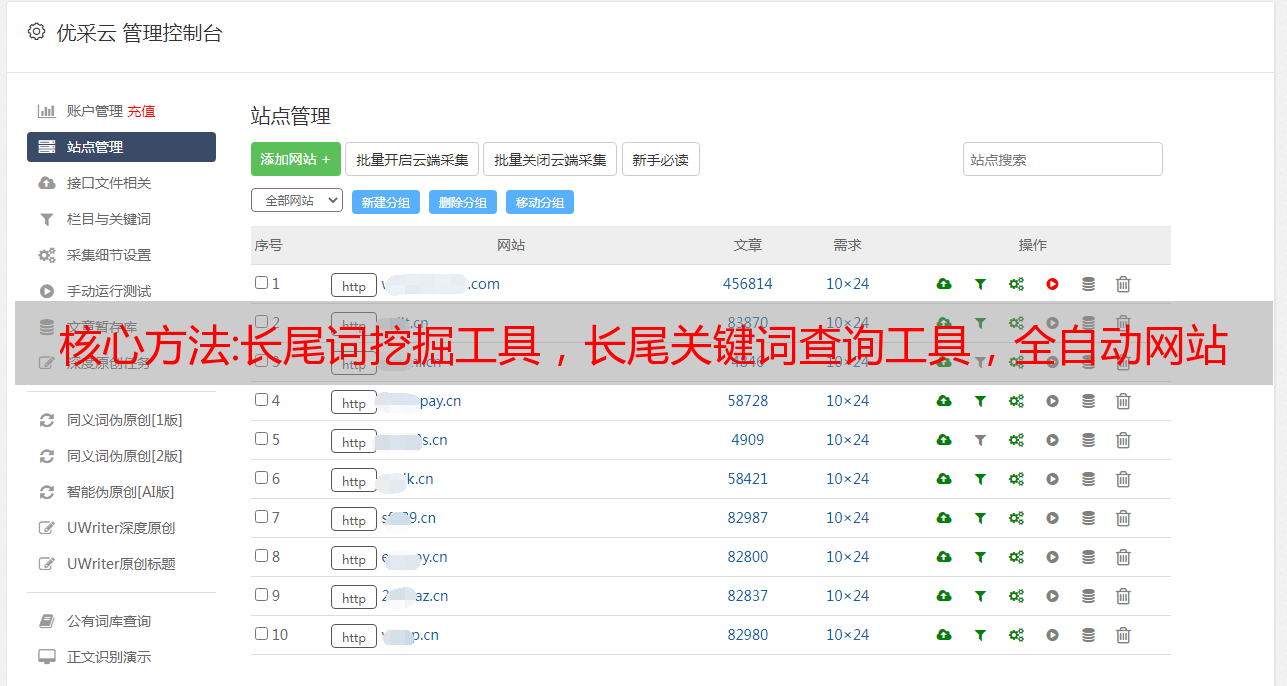 长尾词挖掘工具无视你的建站工具,不管你的网站是Empirecms、易友cms、ZBLOG、织梦cms、Universal网站采集器、苹果cms、人人网cms、美图cms、云游cms、小旋风蜘蛛池、THINKCMF、PHPcmsV9、PBootcms、Destoon、Oceancms、Extremecms、EMLOG、TYPECHO、WXYcms、TWcms、Subbi Theme、迅锐cms 和其他主要的 cms 可以长尾 关键词 挖掘然后 文章关键词pan采集伪原创 释放。