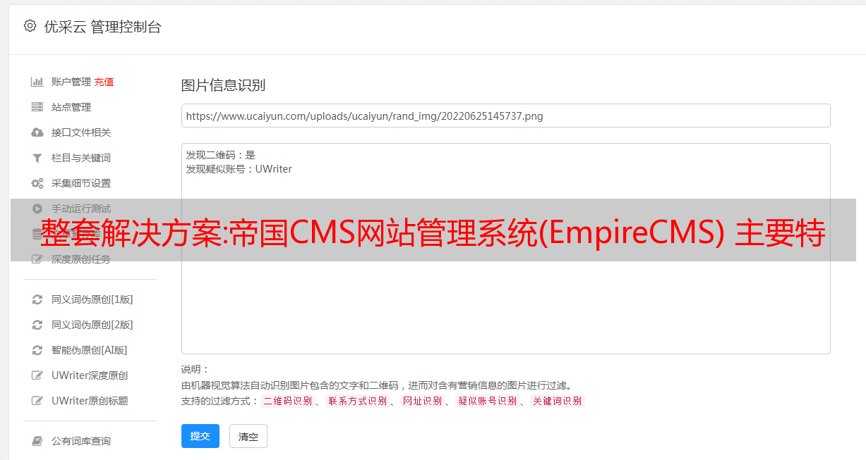 优采云 发布时间: 2022-10-08 17:16整套解决方案:帝国CMS网站管理系统(EmpireCMS) 主要特性详细介绍