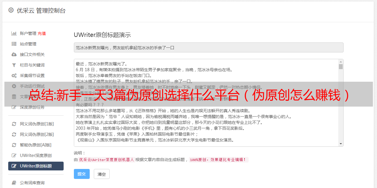 总结:新手一天3篇伪原创选择什么平台(伪原创怎么赚钱)