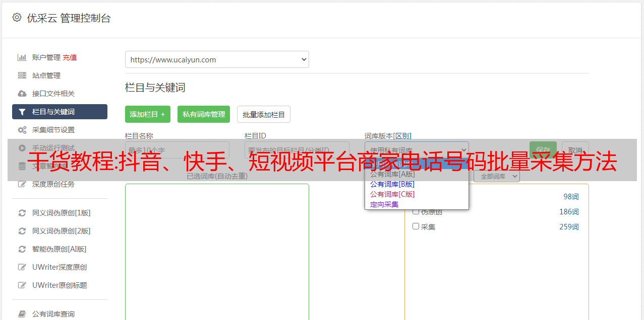 优采云 发布时间: 2022-10-09 12:11干货教程:抖音、快手、短视频平台商家电话号码批量采集方法及使用