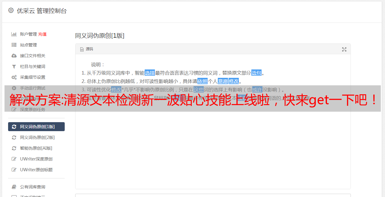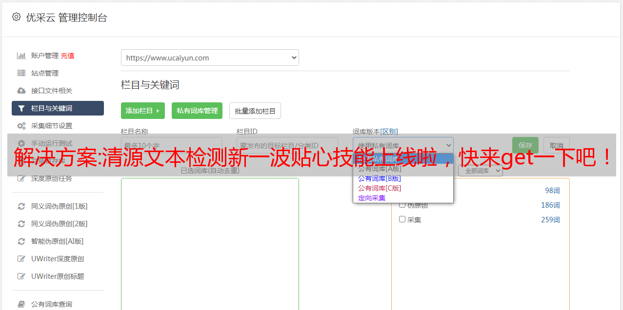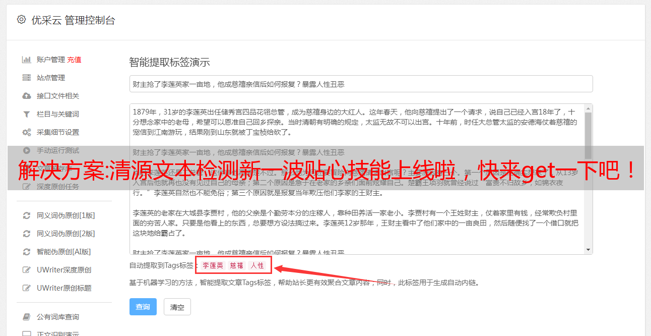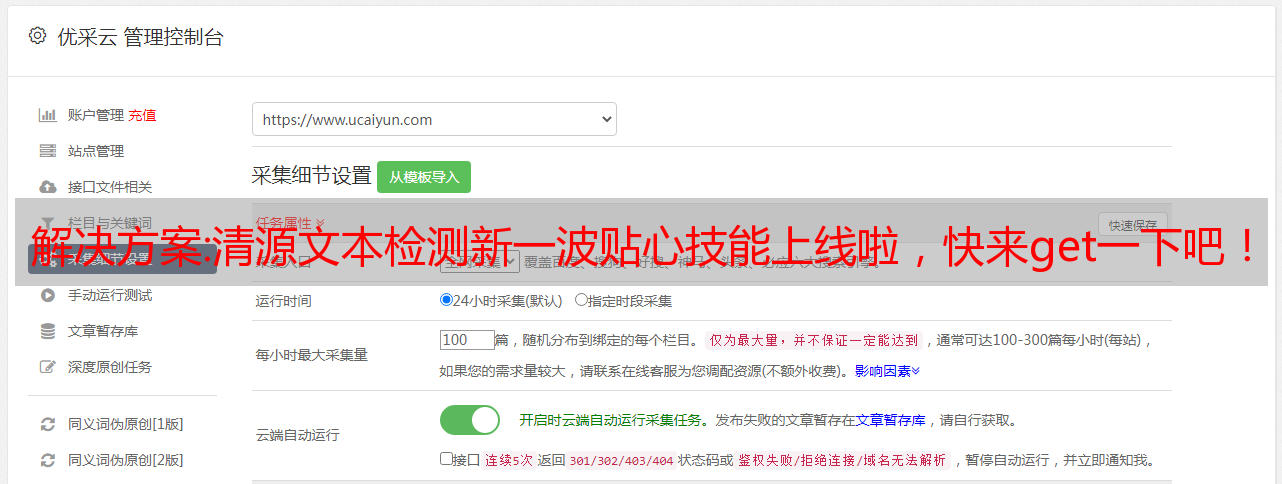 优采云 发布时间: 2022-10-09 20:07解决方案:清源文本检测新一波贴心技能上线啦,快来get一下吧!