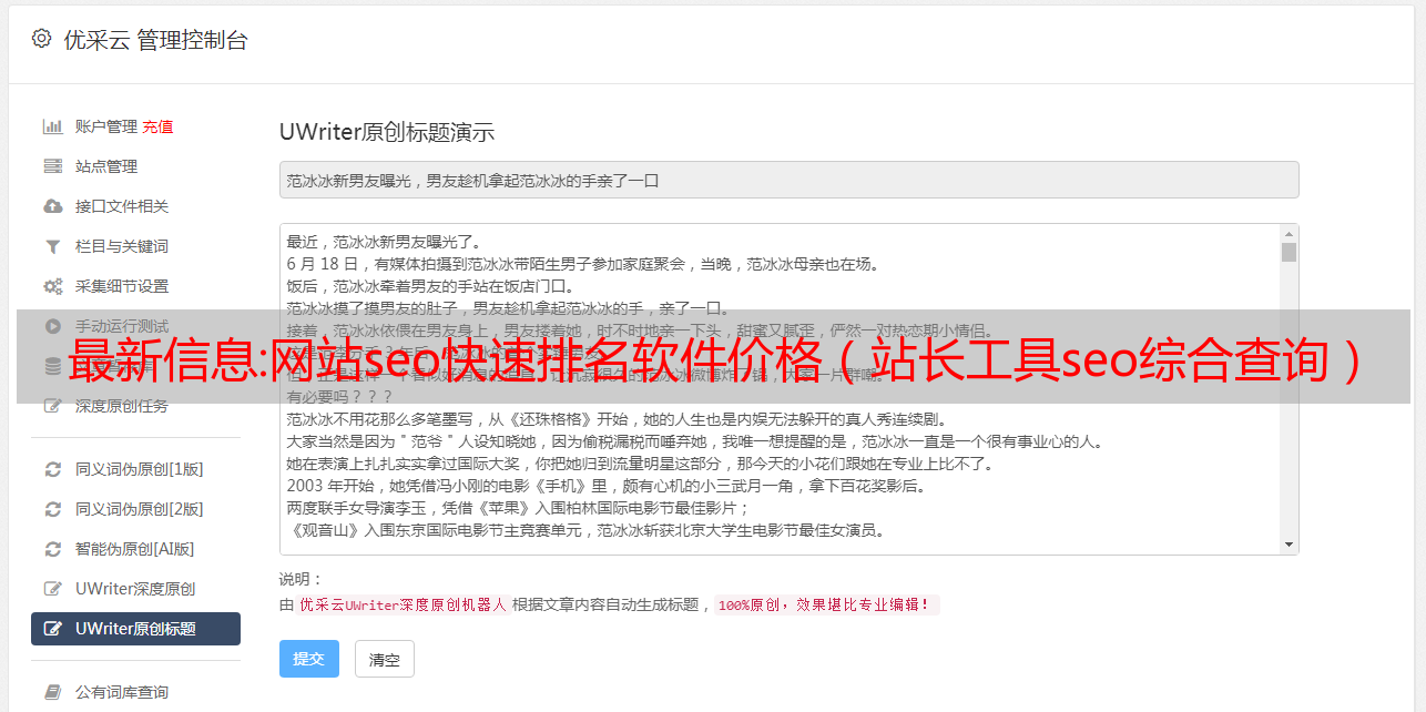 最新信息:网站seo快速排名软件价格(站长工具seo综合查询)