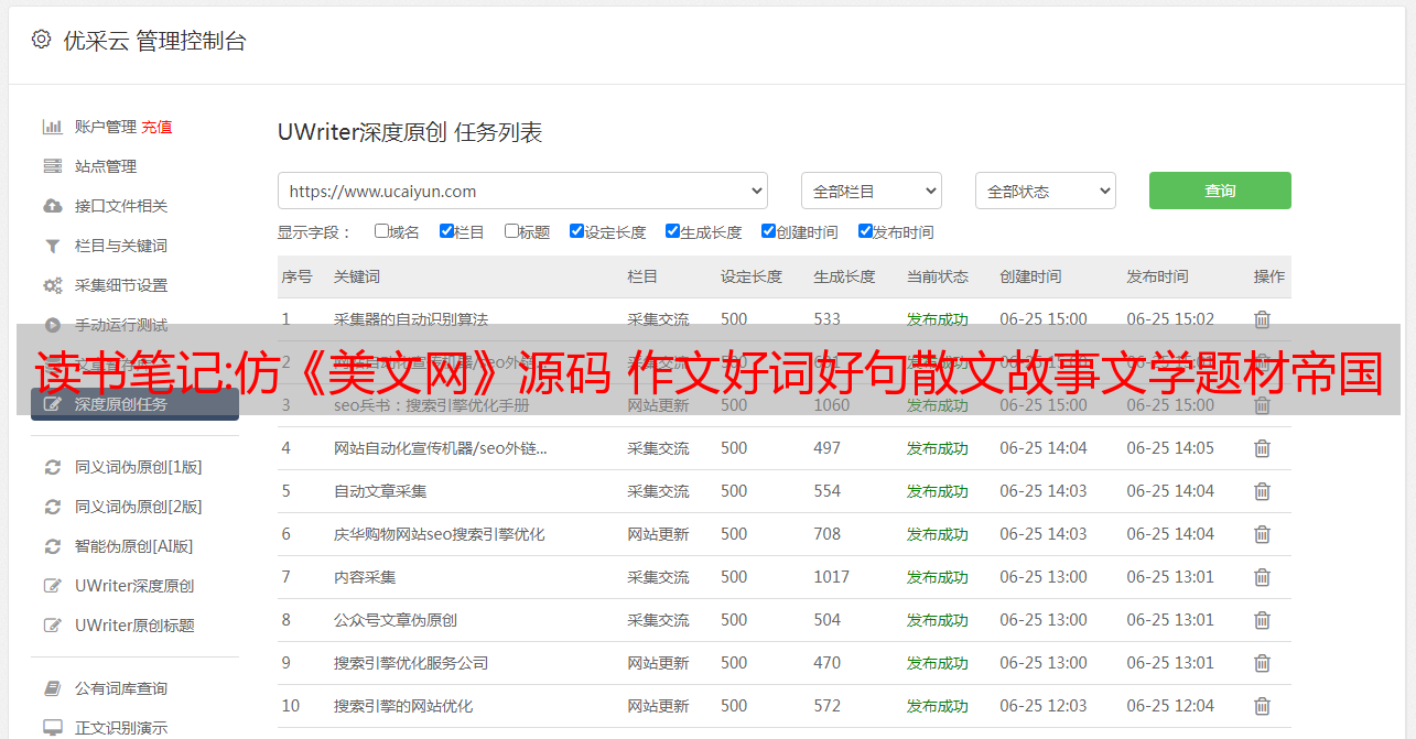 优采云 发布时间: 2022-10-10 09:16读书笔记:仿《美文网》源码 作文好词好句散文故事文学题材帝国cms模板 带采集同步生成