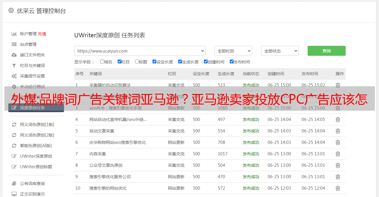 一、以下是优采云软件亚马逊数据采集软件,大家可以了解一、多种采集方法有效绕过亚马逊反采集mgc建-in高匿名代理IP模式采集,支持高匿名或独占代理采集;自动判断当前采集是否为mgc,一旦为mgc,会自动挂起线程,等待一定时间间隔继续采集;
