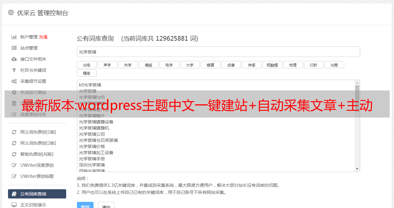 最新版本:wordpress主题中文一键建站+自动采集文章+主动提交引擎收录免费