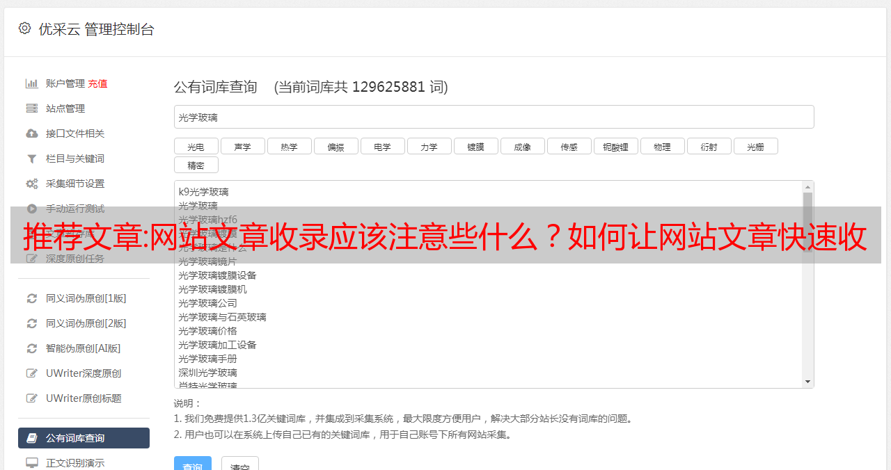 优采云 发布时间: 2022-10-11 01:14推荐文章:网站文章收录应该注意些什么?如何让网站文章快速收录?