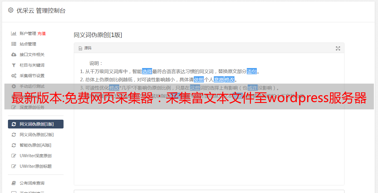 优采云 发布时间: 2022-10-11 05:06最新版本:免费网页采集器:采集富文本文件至wordpress服务器