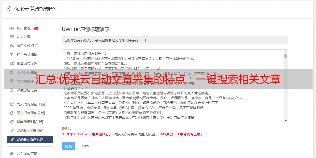 汇总:优采云自动文章采集的特点:一键搜索相关文章