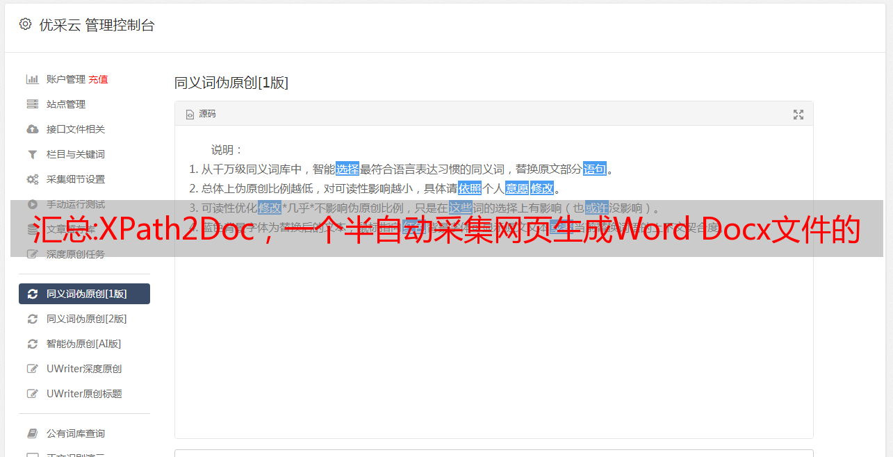 优采云 发布时间: 2022-10-11 07:20汇总:XPath2Doc,一个*敏*感*词*采集网页生成Word Docx文件的工具
