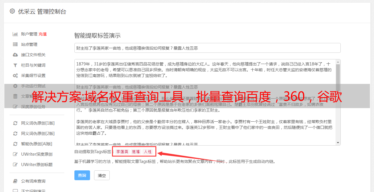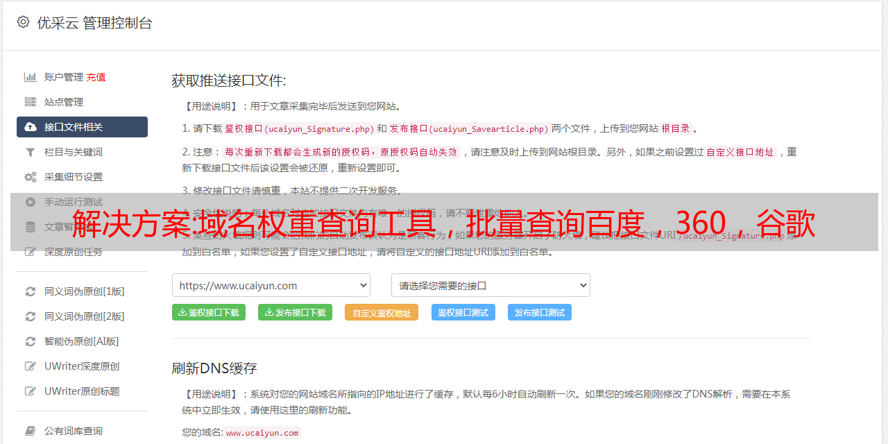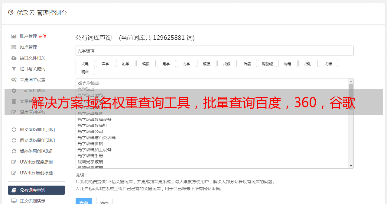 优采云 发布时间: 2022-10-12 05:27解决方案:域名权重查询工具,批量查询百度,360,谷歌