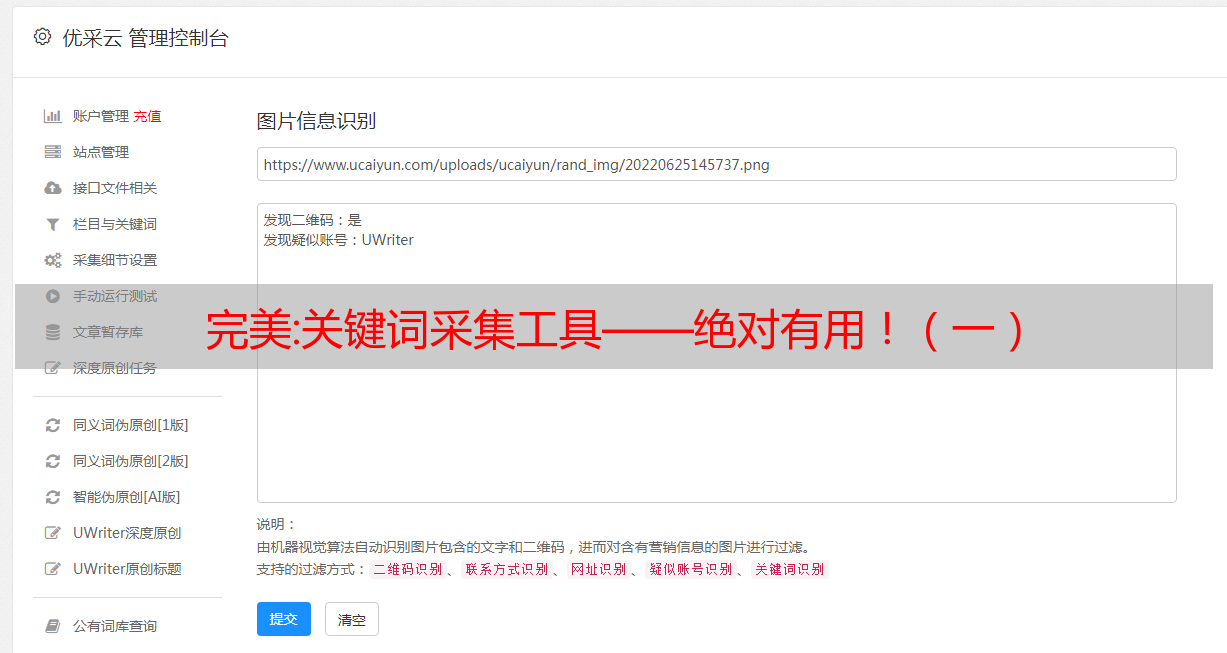 优采云 发布时间: 2022-10-12 11:18关键词采集工具——绝对有用!是对常见词语收集的简单提取工具,但用这个工具来采集词语的时候,注意以下两点!1、这个工具得是英文版的,如果是中文版那就没用了2、为什么要用英文版的呢?因为很多词语,在中文版中是直接不提供的,因为一些词语被翻译过来,大家很可能会把这词语直接带过去了,就比如fame、water等等。