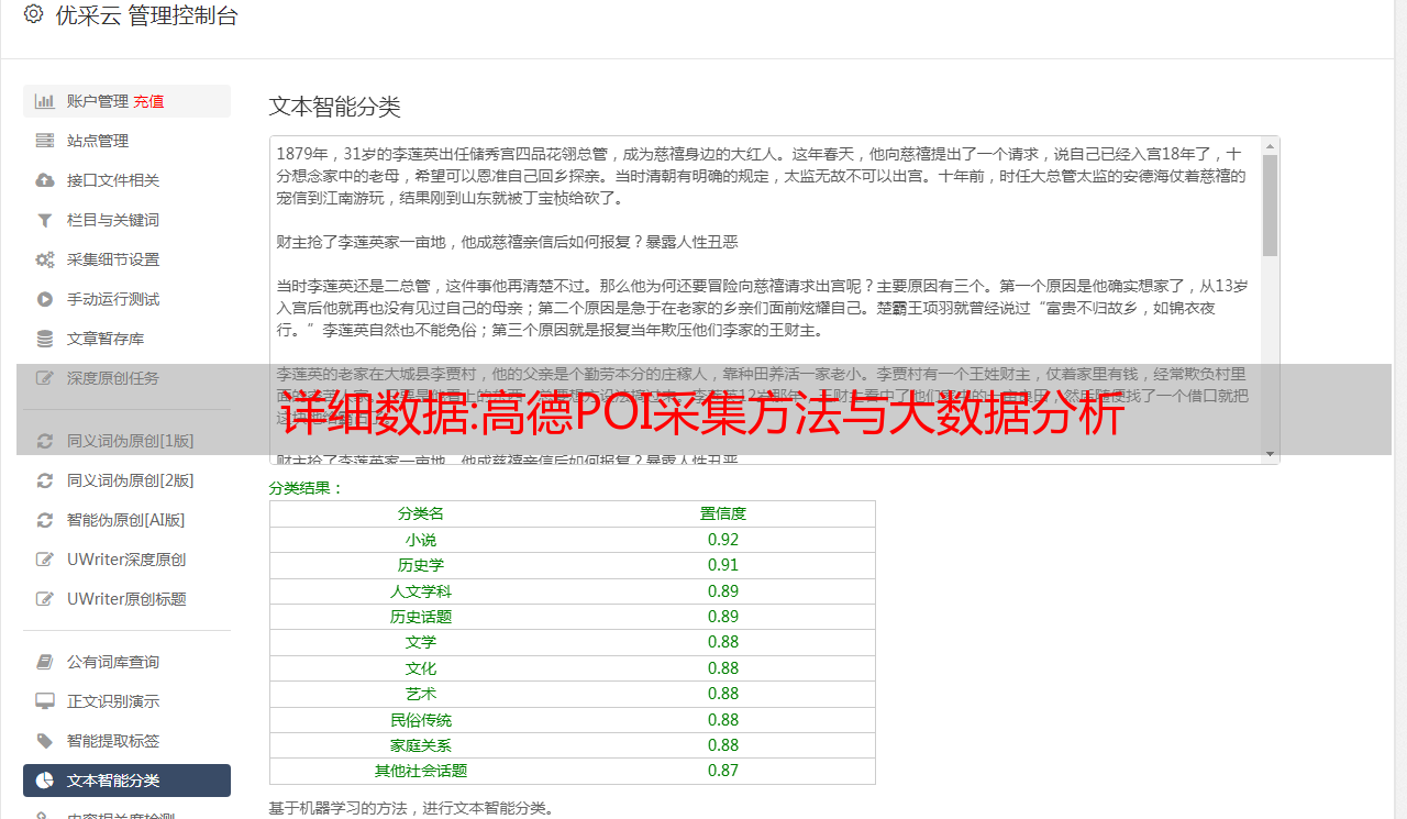 优采云 发布时间: 2022-10-12 12:33详细数据:高德POI采集方法与大数据分析