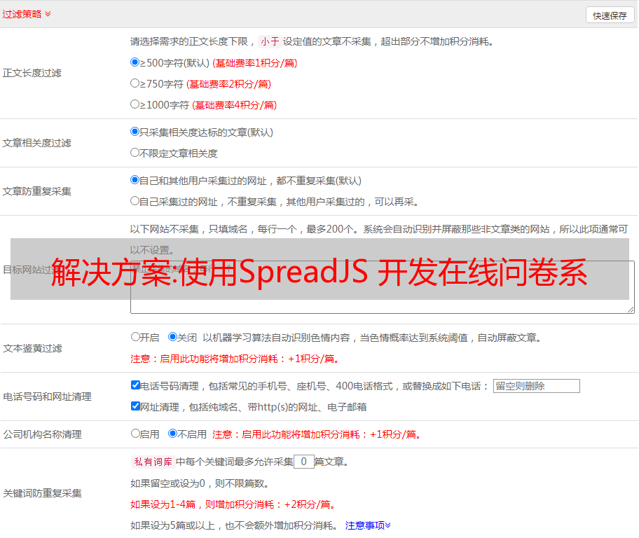 优采云 发布时间: 2022-10-12 18:16解决方案:使用SpreadJS 开发在线问卷系统,构筑CCP(云数据采集)平台