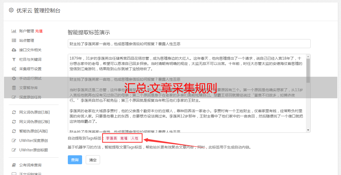 优采云 发布时间: 2022-10-13 09:29汇总:文章采集规则