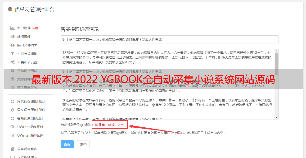 最新版本:2022 YGBOOK全自动采集小说系统网站源码