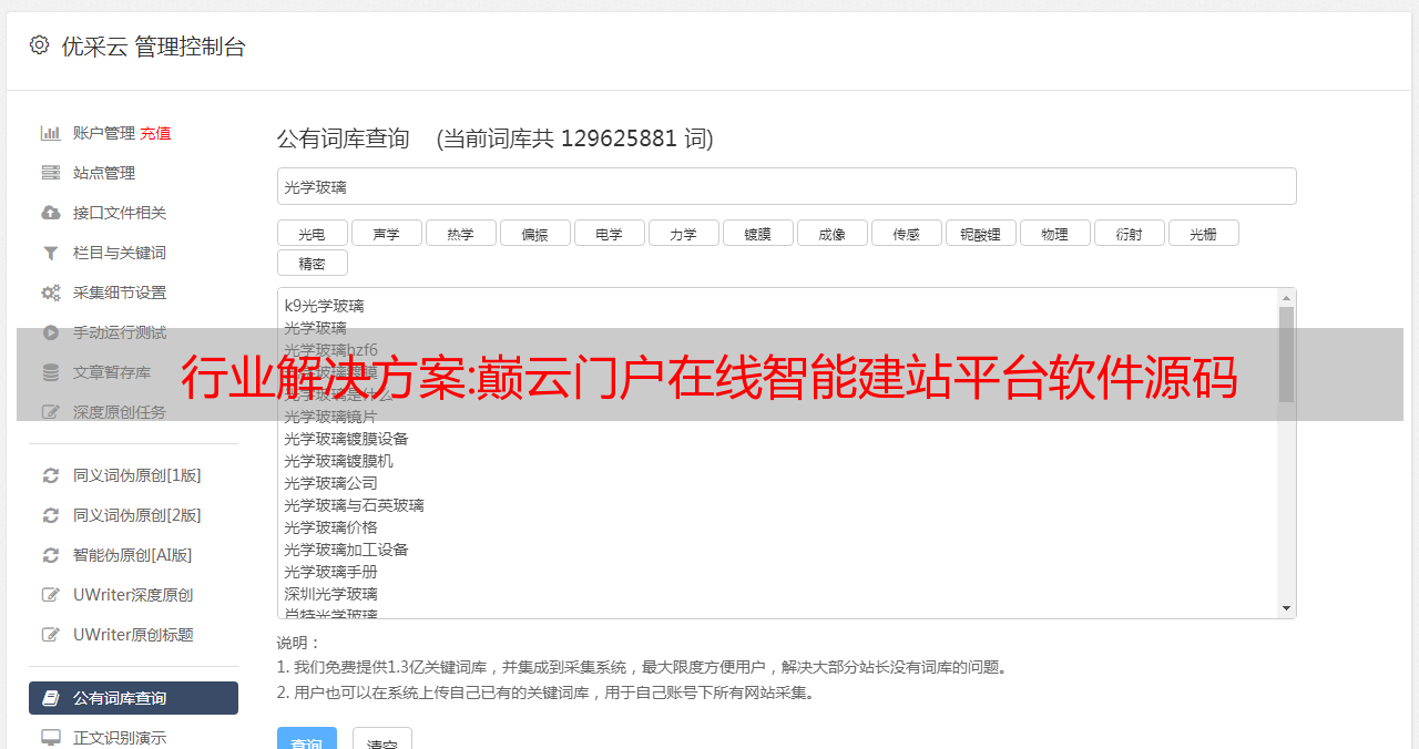 优采云 发布时间: 2022-10-14 03:45行业解决方案:巅云门户在线智能建站平台软件源码