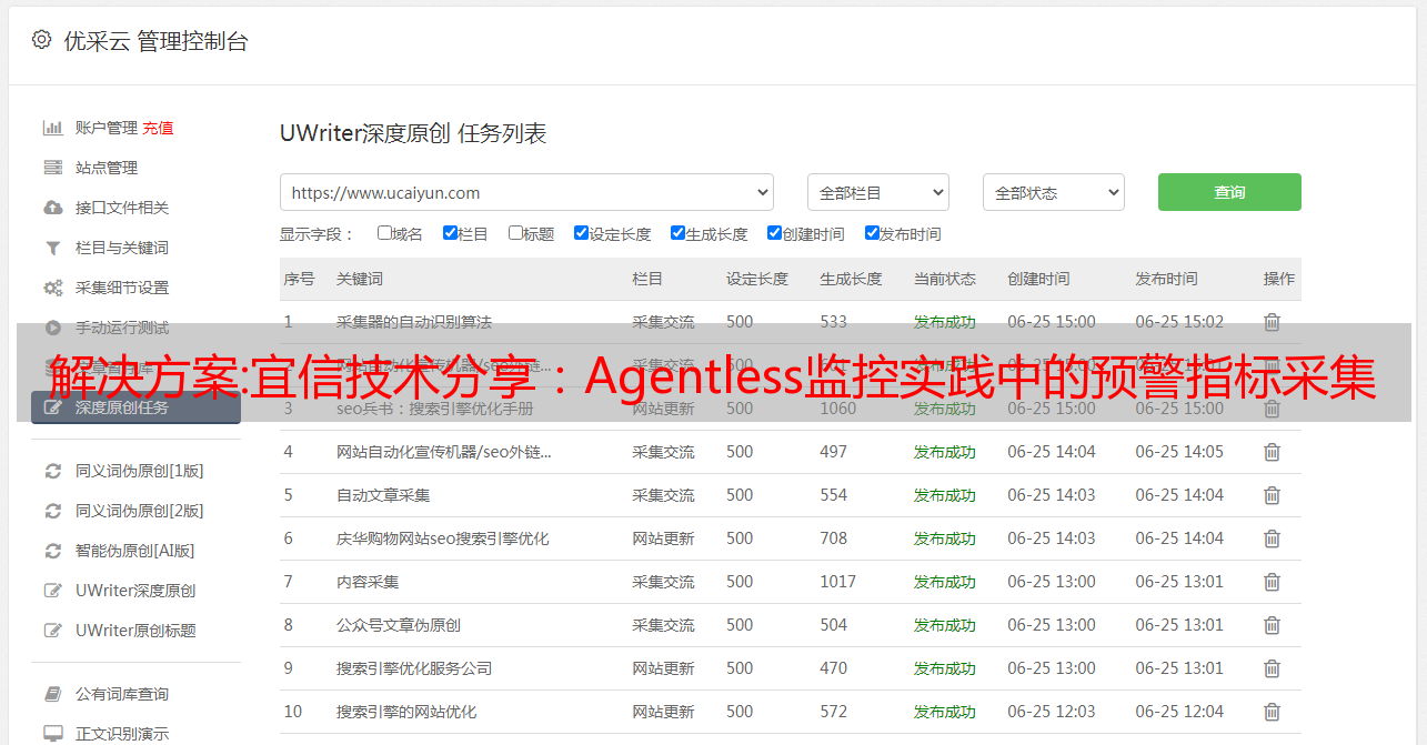 优采云 发布时间: 2022-10-14 08:14解决方案:宜信技术分享:Agentless监控实践中的预警指标采集