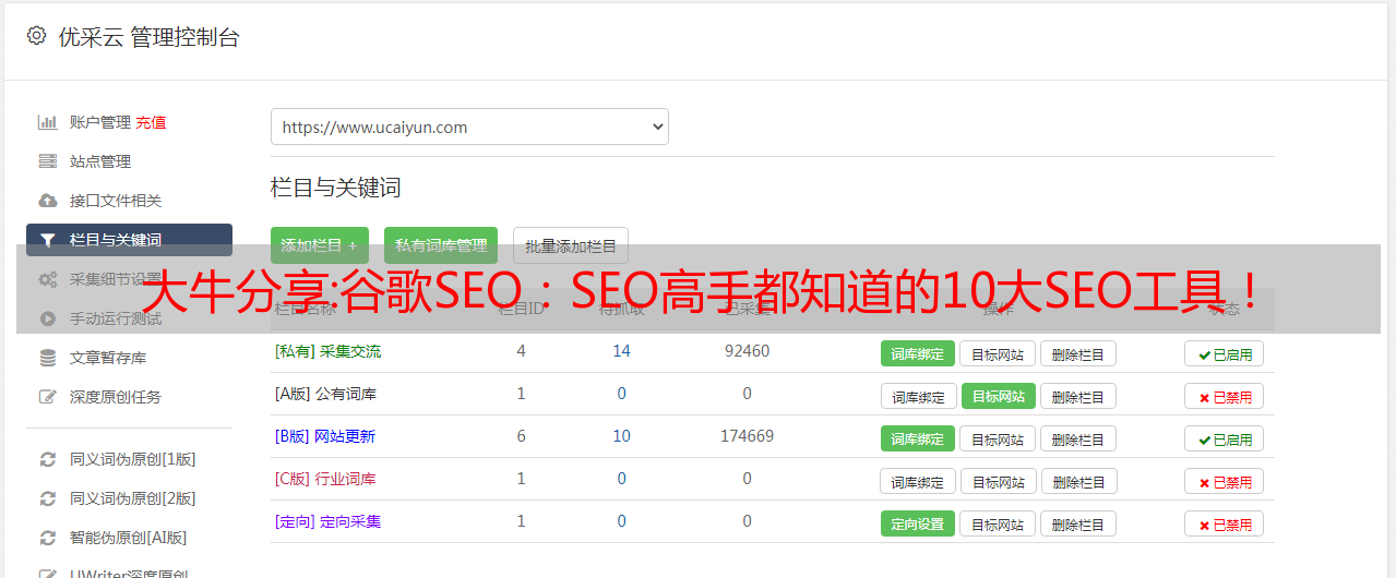 优采云 发布时间: 2022-10-14 11:13大牛分享:谷歌SEO:SEO高手都知道的10大SEO工具!