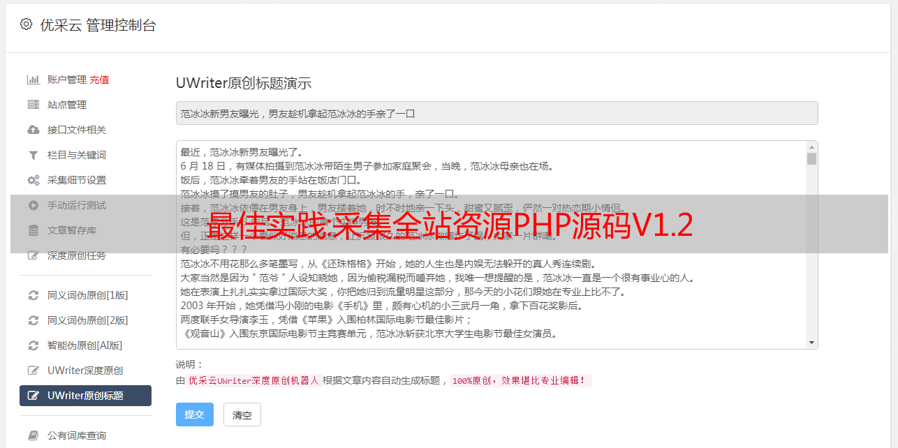 优采云 发布时间: 2022-10-14 19:17最佳实践:采集全站资源PHP源码V1.2