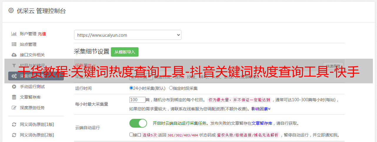 优采云 发布时间: 2022-10-15 02:41干货教程:关键词热度查询工具-抖音关键词热度查询工具-快手关键词热度查询