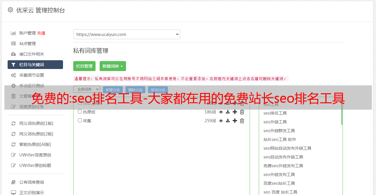 SEO排名工具,市面上有很多SEO工具,哪些SEO排名工具真的有效?今天给大家介绍一款万能免费SEO工具,批量外链,网站地图生成,敏感词检测。SEO配置(自动双标题/自动内链/带标题水印的图片/自动翻译/主动推送搜索引擎收录)、自动点击等详细参考图片