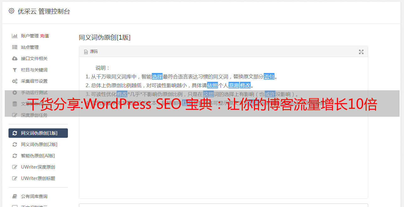 优采云 发布时间: 2022-10-16 00:40干货分享:WordPress SEO 宝典:让你的博客流量增长10倍