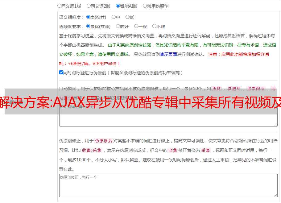 解决方案:AJAX异步从优酷专辑中采集所有视频及信息(JavaScript代码)