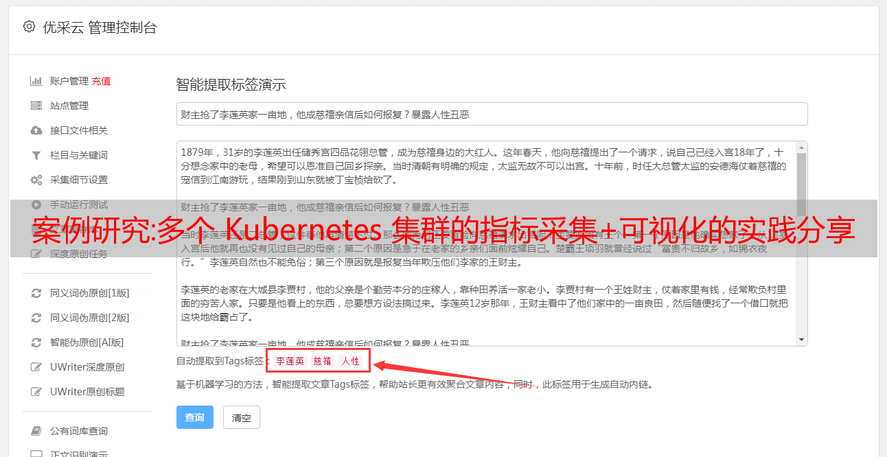 优采云 发布时间: 2022-10-16 10:14案例研究:多个 Kubernetes 集群的指标采集+可视化的实践分享