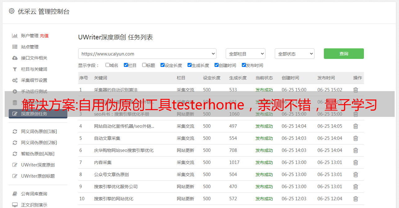 优采云 发布时间: 2022-10-16 18:11解决方案:自用伪原创工具testerhome,亲测不错,量子学习