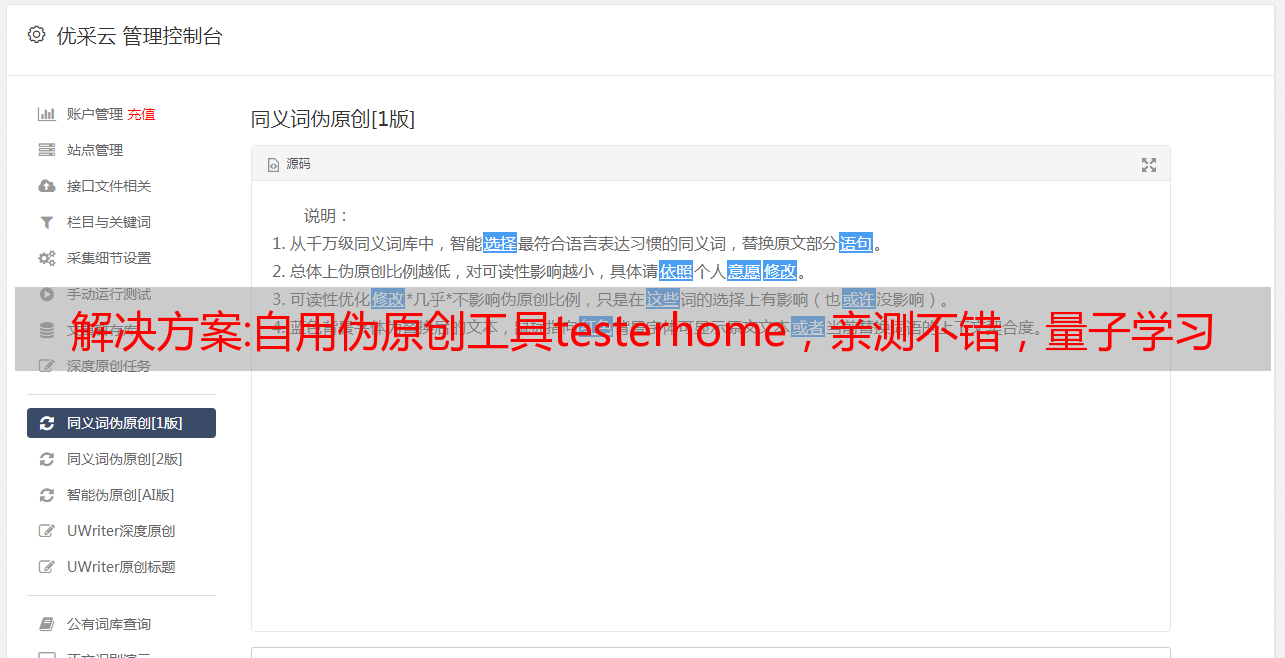 解决方案:自用伪原创工具testerhome,亲测不错,量子学习