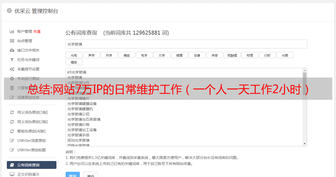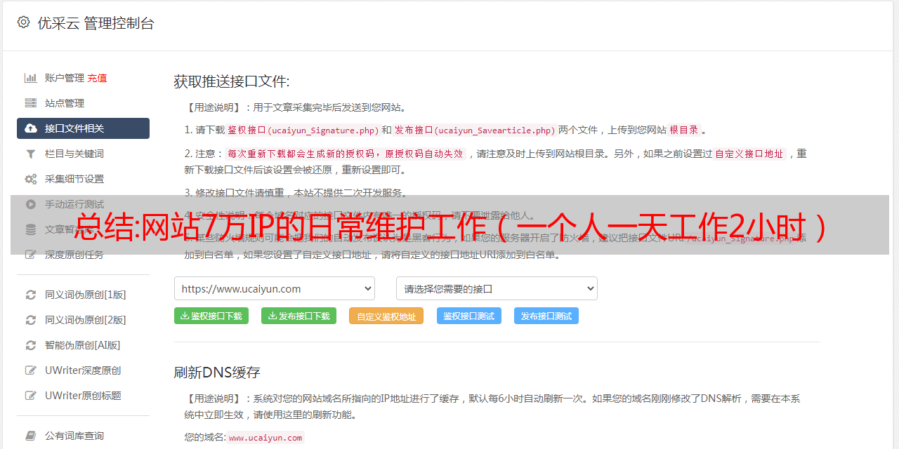 优采云 发布时间: 2022-10-16 19:20总结:网站7万IP的日常维护工作(一个人一天工作2小时)