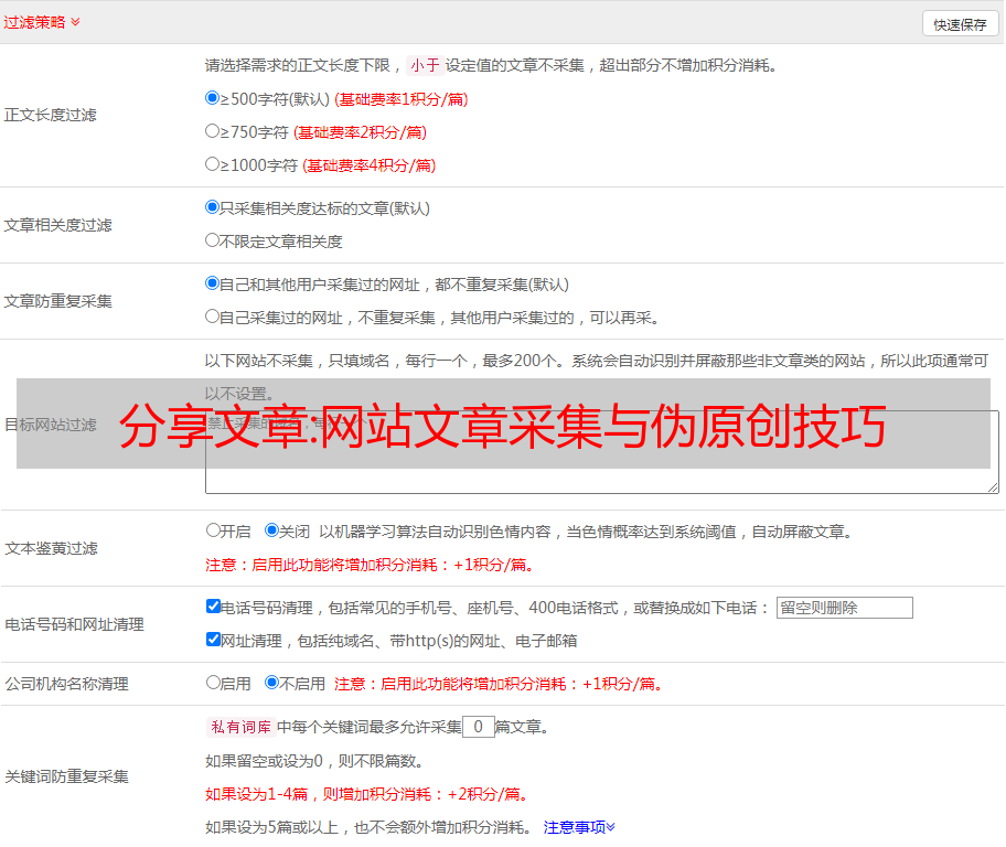 其实不管是原创文章还是采集伪原创 文章,为了解决用户的需求,我们写的文章起点,也应该这样,并加以说明,让用户有更好的阅读体验,符合高质量文章的特点,如果排版凌乱,文章内容与文章的标题不匹配,内容对用户没有多大用处, 它不能很好地解决用户的问题,那么即使文章原创很高,搜索引擎也会认为这个文章是垃圾文章,相反,如果我们关注用户的需求和体验,为了解决用户的问题做高质量的伪原创文章,那么搜索引擎就会认为这个文章是一个高质量的文章, 从而加快收录,提高网站排名。