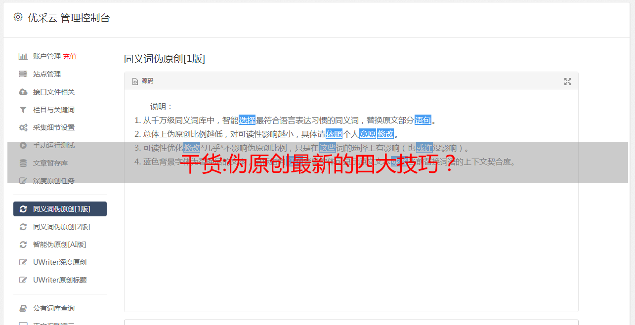 现在自媒体对于网页内容的展示和推广尤为重要。基本上,每个企业都在为宣传而战。毫无疑问,依靠媒体传播产品内容需要大量的文章来展示来自媒体平台的大量文章,那么我们就不得不使用伪原创文章软件,小编这里简单总结一下伪原创最新的四种技巧: