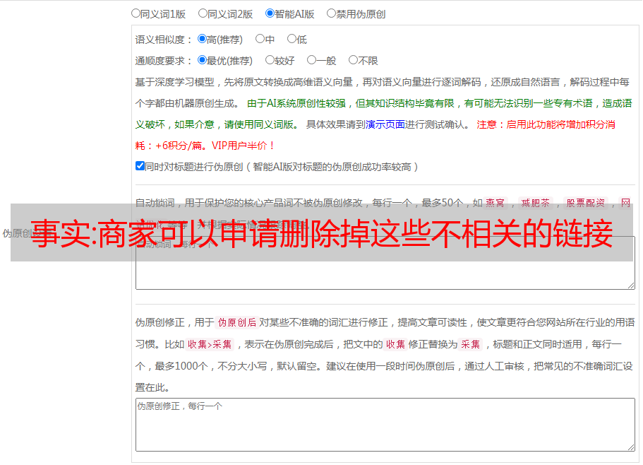 采集的文章和关键词不符合你们商家的实际,所以商家可以申请删除掉这些不相关的链接或者是违规图片和商品,