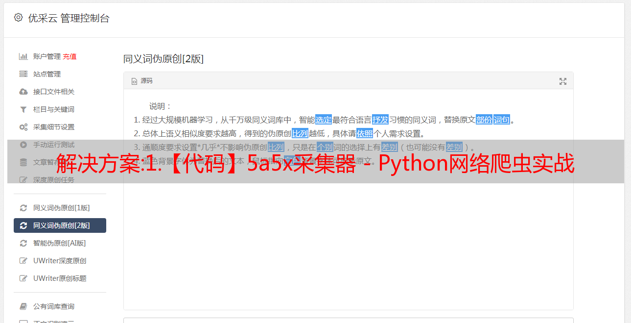 解决方案:1.【代码】5a5x采集器 - Python网络爬虫实战