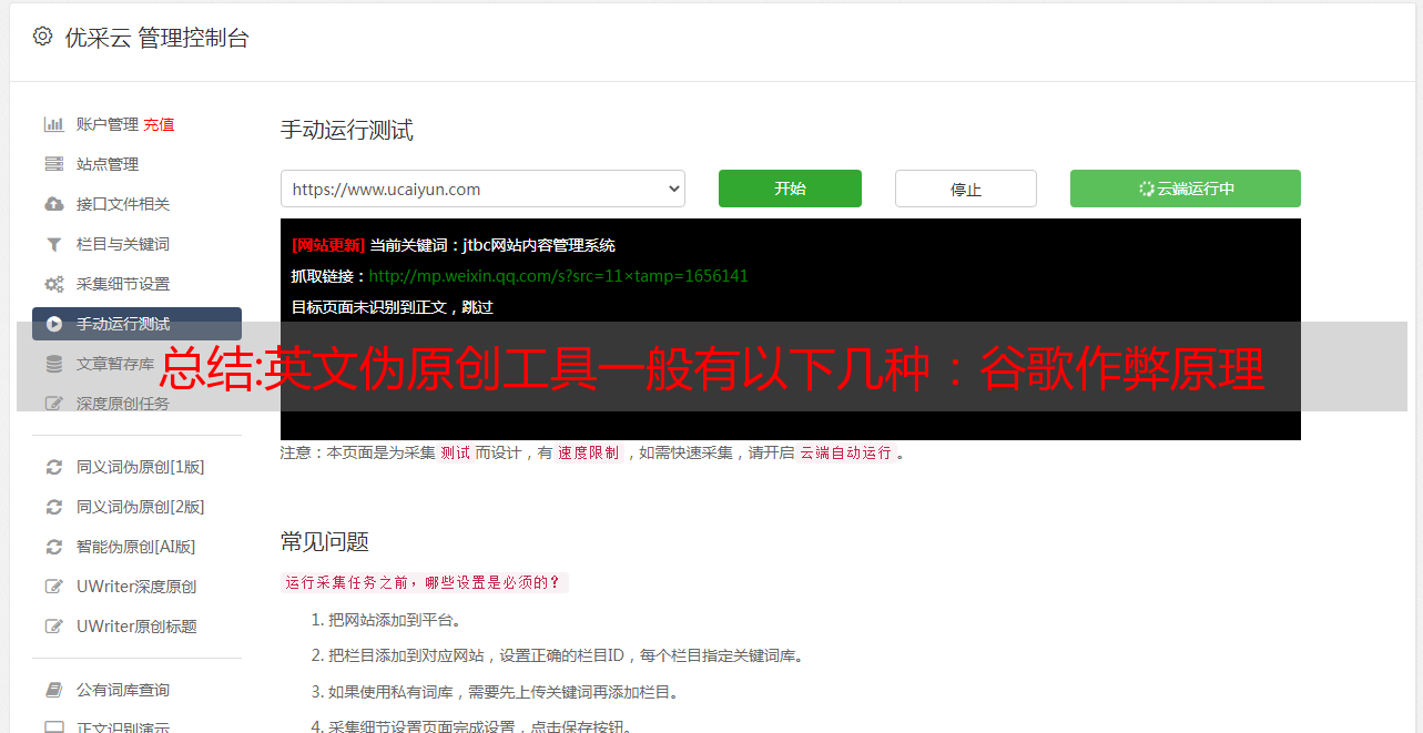 优采云 发布时间: 2022-10-17 22:09总结:英文伪原创工具一般有以下几种:谷歌作弊原理