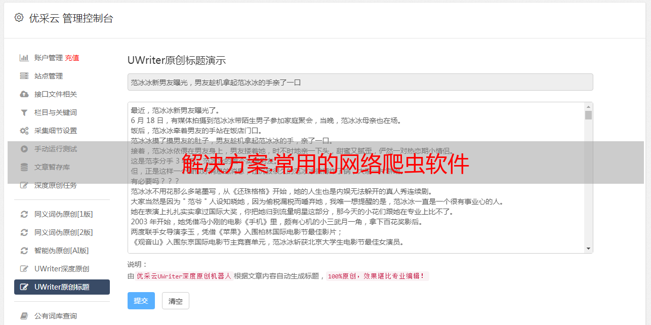 优采云 发布时间: 2022-10-18 03:12解决方案:常用的网络爬虫软件