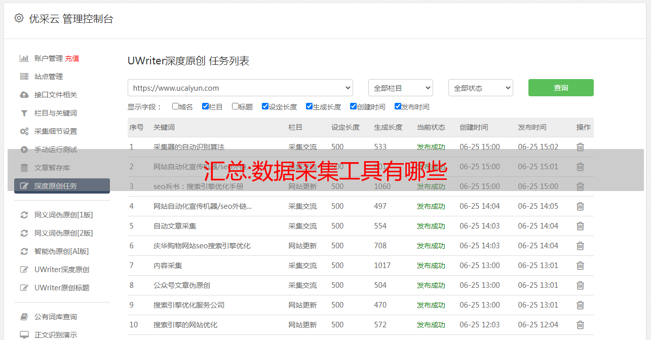 优采云是一个基于网络运营商实名制的网页数据采集、移动互联网数据和API接口服务集成的数据服务平台。它最大的特点就是不用懂网络爬虫技术就可以轻松完成采集,而且好用好用。