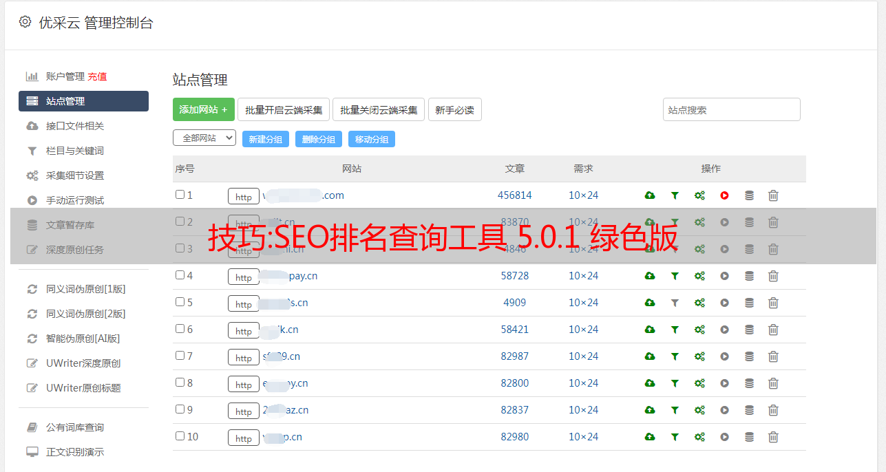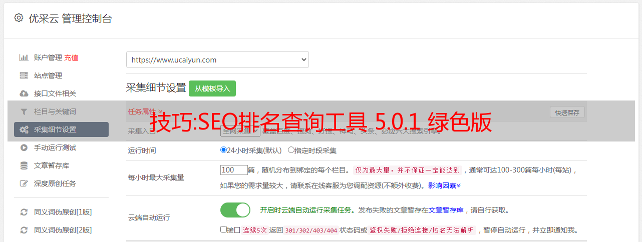 优采云 发布时间: 2022-10-18 13:30技巧:SEO排名查询工具 5.0.1 绿色版