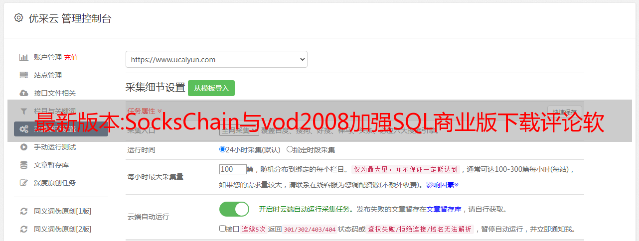 VOD2008增加了超级采集功能,采集电影存储(采集不加防盗甚至电影源地址入库,播放时不连接采集电影)网站!)