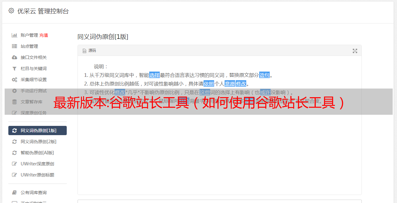 优采云 发布时间: 2022-10-19 06:14最新版本:谷歌站长工具(如何使用谷歌站长工具)