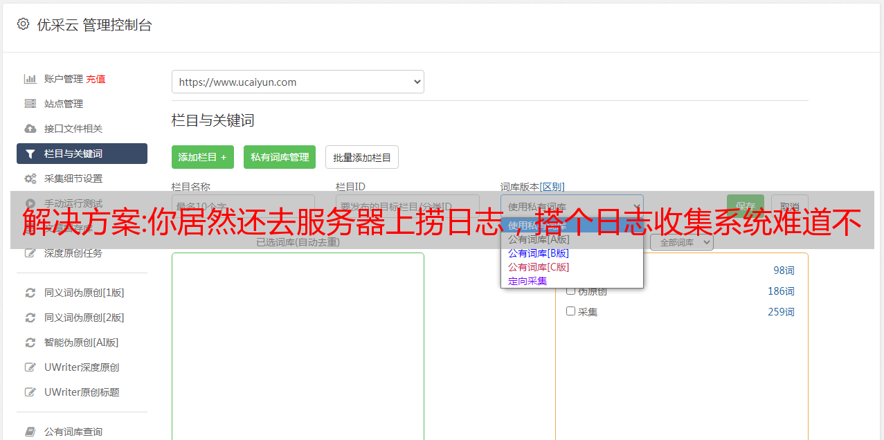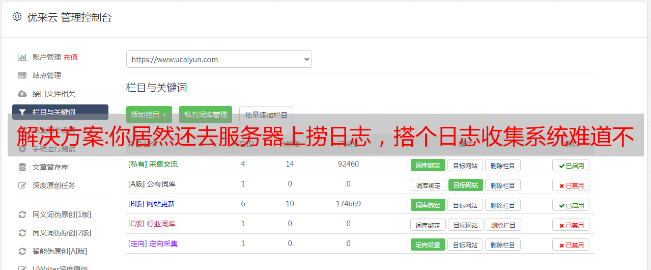 优采云 发布时间: 2022-10-19 17:23解决方案:你居然还去服务器上捞日志,搭个日志收集系统难道不香么!