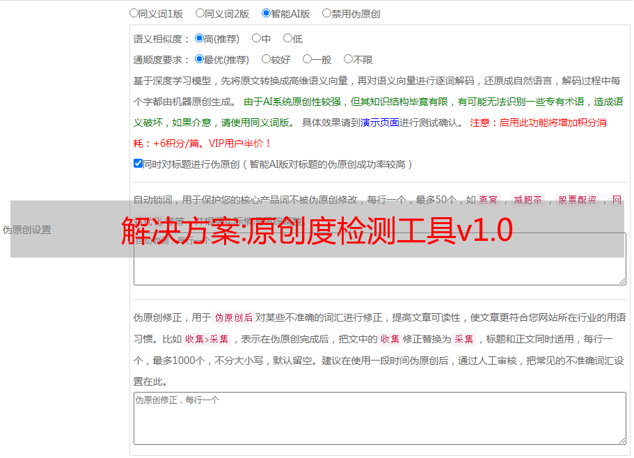 优采云 发布时间: 2022-10-20 04:06解决方案:原创度检测工具v1.0