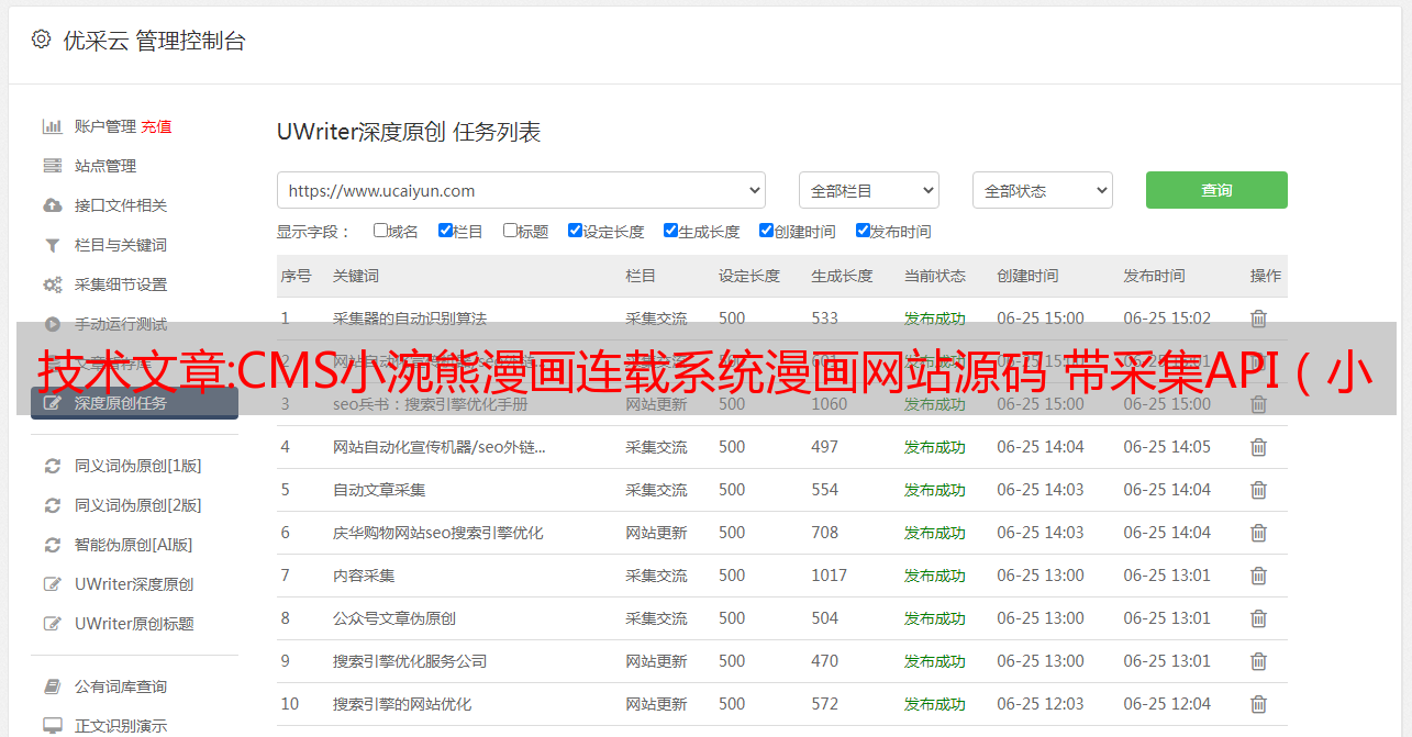 优采云 发布时间: 2022-10-20 19:25技术文章:CMS小涴熊*敏*感*词*连载系统*敏*感*词*网站源码 带采集API(小浣熊*敏*感*词*CMS源码)