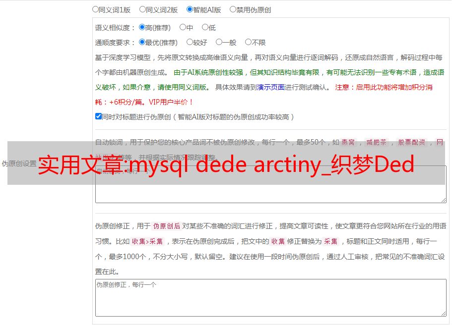很多人只是将主表的dede_archives ID 设置为 1,这还不够。确保同时执行微表dede_arctiny和附录表dede_addonarticle,以便 id 可以从 1 开始。