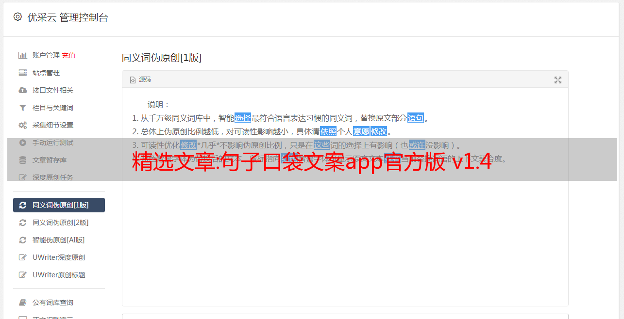 优采云 发布时间: 2022-10-22 02:28精选文章:句子口袋文案app官方版 v1.4