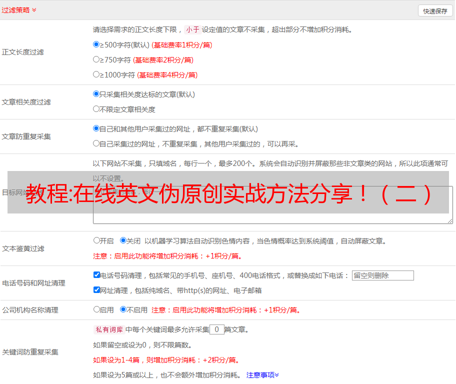 3)自动伪原创由于上述两种方法修改后上传至英文伪原创网站,很难正确判断匹配原文。这时,就需要google翻译了,请不要忘记,网站的原文是wordpress的一部分。
