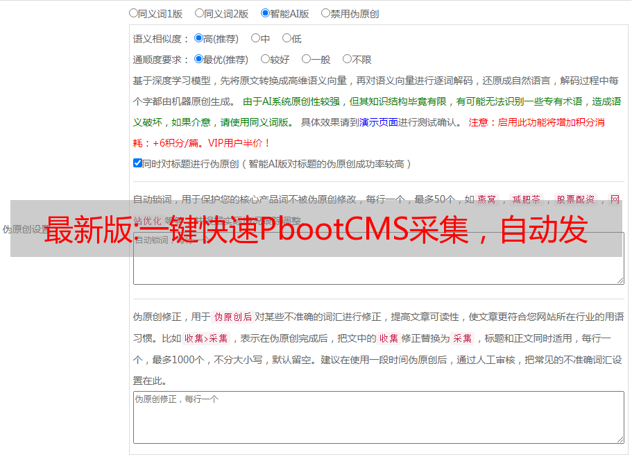 Pbootcms采集高质量内容的第一件事是自动伪原创发布。网站站长网站文章应该是“新鲜”的、新的和伪原创的。它必须与所有其他博客不同,文章和文章已经在互联网上。这是用户想要阅读的内容。【干货二见图二,完全免费cms采集)。