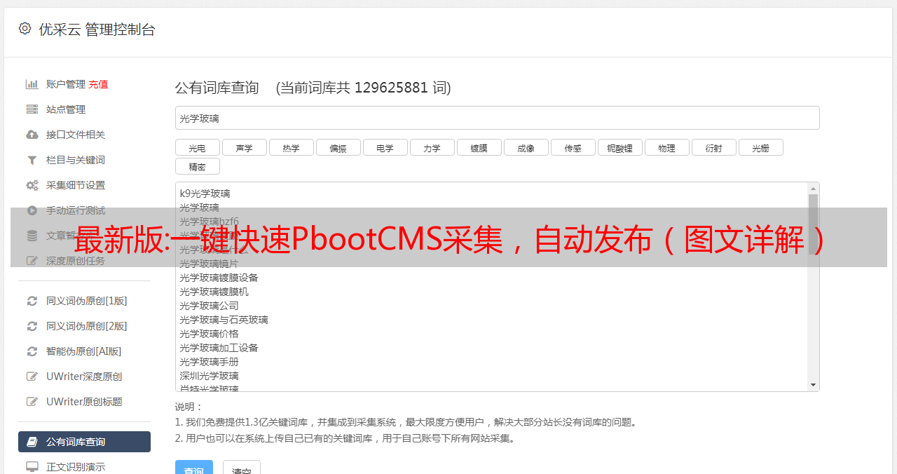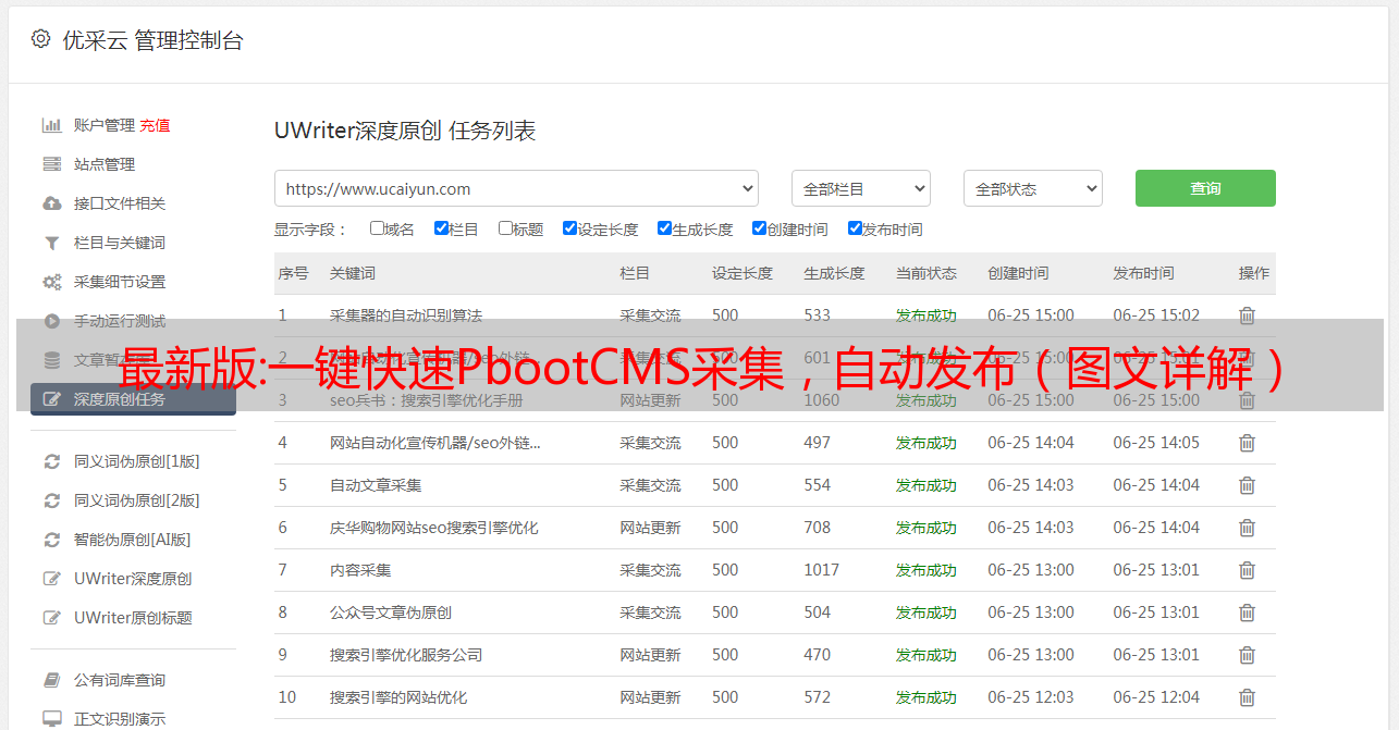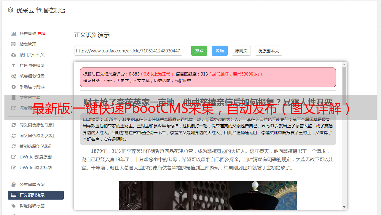优采云 发布时间: 2022-10-22 13:28最新版:一键快速PbootCMS采集,自动发布(图文详解)