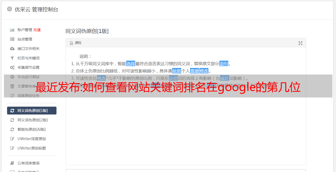 在这个站长工具中,我们不仅可以看到我们网站关键词的排名,还可以看到每个月关键词的曝光,每一个关键词点击的曝光- 通过率和访问者的点击次数,以及整体 关键词 平均排名。有了这些数据,我们可以更好地检查和平衡我们的 关键词 排名 网站 。